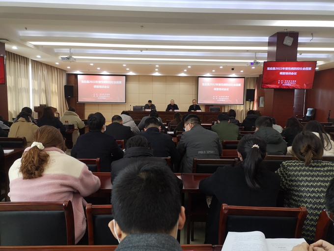 本次会议由梁永春同志主持,会议首先戴主红副主任作了讲话,他对本次调查提出四点要求:一是要强化领导,精心组织。各镇要认真按照《宝应县2022年慢性病防控社会因素调查实施方案》要求,认真准备,成立调查工作领导小组,专人负责,明确分工,层层落实。要制订调查计划,做好日程安排。同时要争取镇、村领导支持和配合,广泛宣传动员,提高调查村组人员参与的积极性。二是要强化培训,保质保量按序时完成调查任务。因疫情防控工作要求,今天仅有部分调查岗位的同志参加县级培训,会后各镇还要进行再培训,弄懂吃透方案精神与要求,熟练掌握调查流程和内容,落实每一个岗位培训,岗位人员培训合格率达到100%。三是强化调查项目资金管理,做到专款专用。四是强化督导,全程跟踪服务,为社会因素调查奠定基础。其次由县疾控中心慢病科朱立文科长解读《宝应县2022年慢性病防控社会因素方案》,布置当天调查工作任务,对调查问卷填写进行培训,并要求与会对象进行现场问卷模拟填写。