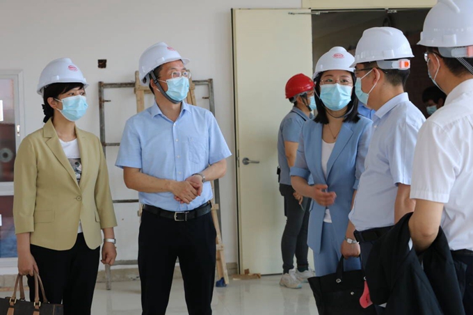 6月2日上午,宝应县人大常委会副主任吴建志,县政府副县长陆宝华,县人大常委会科教文卫委主任谭炳才、副主任吴垚,县政府办副主任肖章凤及部分县人大代表一行人,在县卫健委党委书记、主任徐迎春的陪同下,来到我中心大规模核酸检测基地项目二期工程施工现场视察工程建设进展情况。