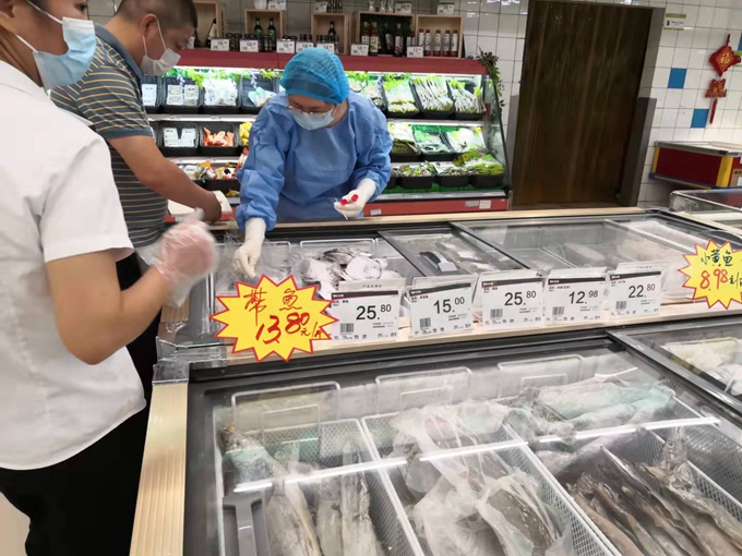 为巩固疫情防控成果,9月20日上午,宝应县疾控中心对苏果、大润发部分大型商场超市生冰鲜禽畜肉、冷冻水产品、生鲜果蔬及熟食等食品及其制品、外包装、操作储存环境及从业人员等进行抽检。共抽检食品20件、环境50件、接触冷链人员10人。