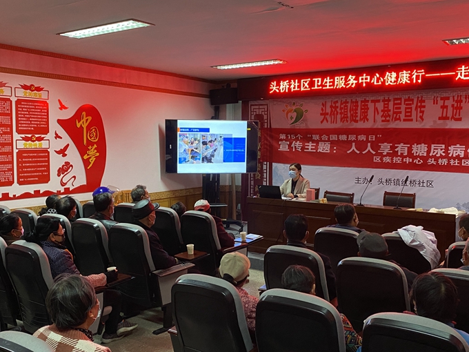 2021年11月14日是第15个“联合国糖尿病日”,为广泛传播糖尿病防治知识,切实提高大众糖尿病防治素养水平,广陵区疾病预防控制中心联合头桥镇社区卫生服务中心走进红桥社区,开展了以“人人享受糖尿病健康管理”为主题的健康宣传教育活动。