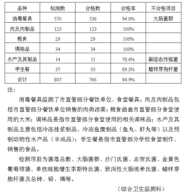 扬州市食品安全卫生监测质量季报(2014年7-9月)
