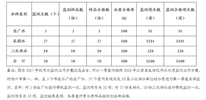 2017年第一季度扬州市城市生活饮用水水质卫生监测情况统计表