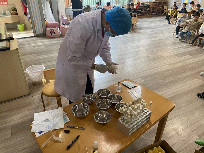 近日,宝应县疾控中心抽取开发区、曹甸、柳堡、宝楠、机关三幼五家幼儿园,开展对我县幼儿园的消毒效果监测。