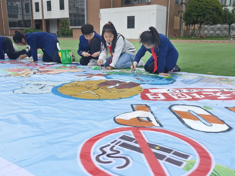 5月26日,在第36个世界无烟日来临之际,由江都区卫健委、教育局主办,区疾控中心承办“无烟,为成长护航!中小学生共绘百米画卷”活动在江都区华君外国语学校开展。